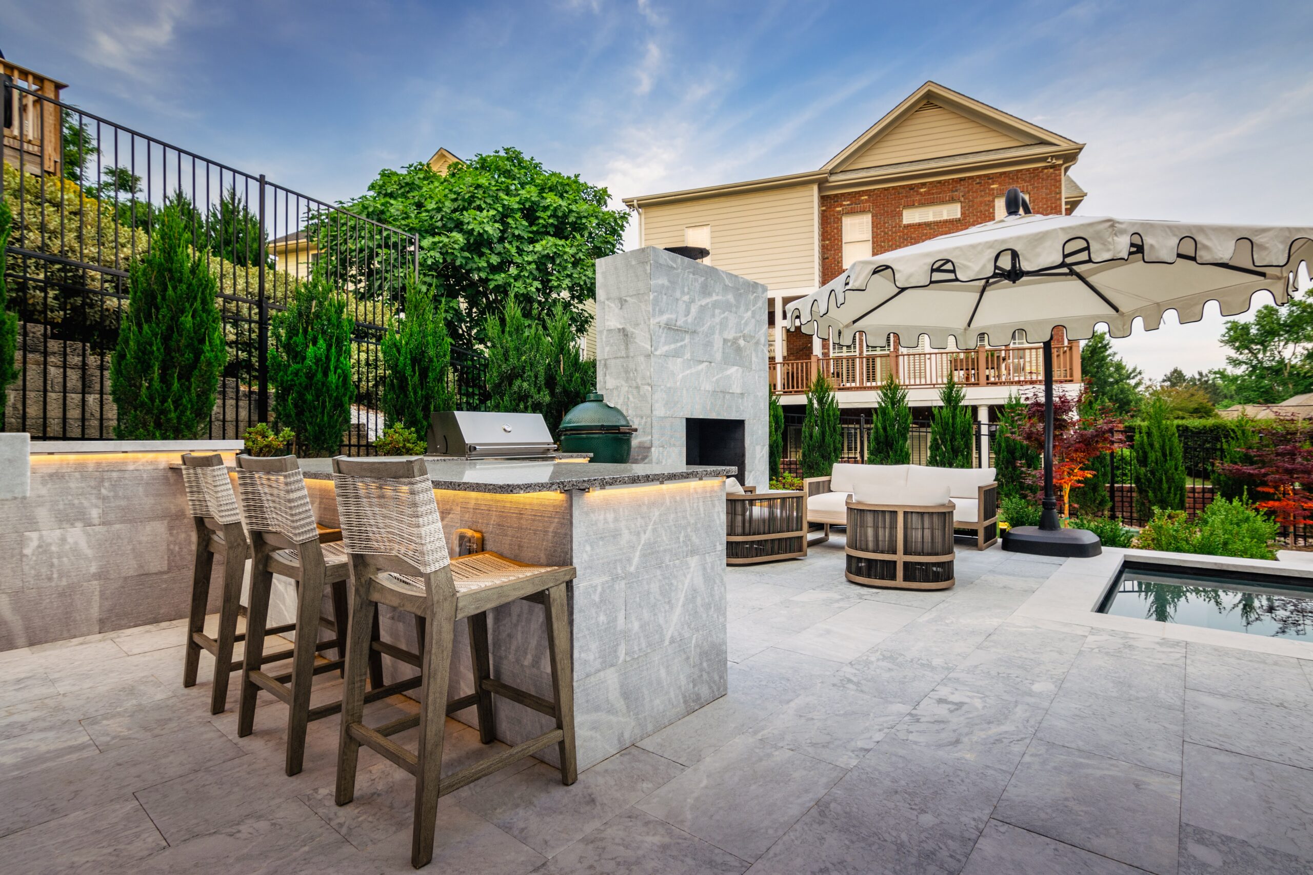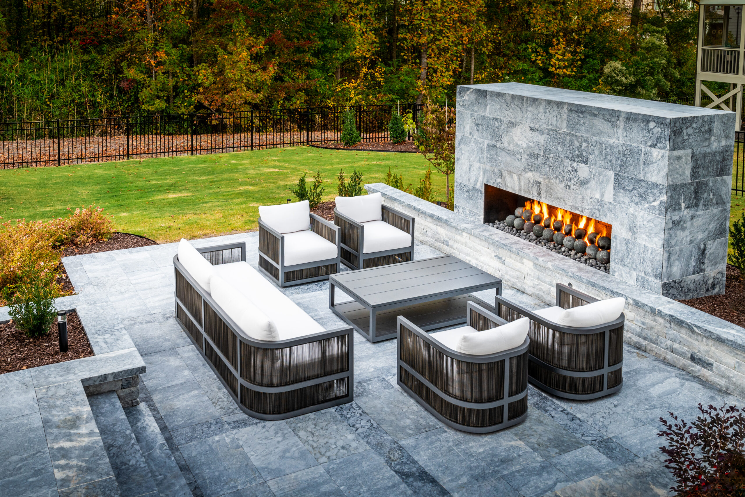 We specialize in custom solutions for your outdoor spaces, allowing you to personalize your environment exactly how you envision it. From designing circle fire pits that become the centerpiece of family gatherings to creating unique stone veneers that enhance the exterior walls of your home, our options are limitless. Using materials like exterior veneer and durable outdoor porcelain, we ensure every custom feature is visually appealing and built to last. Our team works closely with you to understand your needs and preferences, ensuring the final product perfectly aligns with your lifestyle and enhances your home’s outdoor areas.