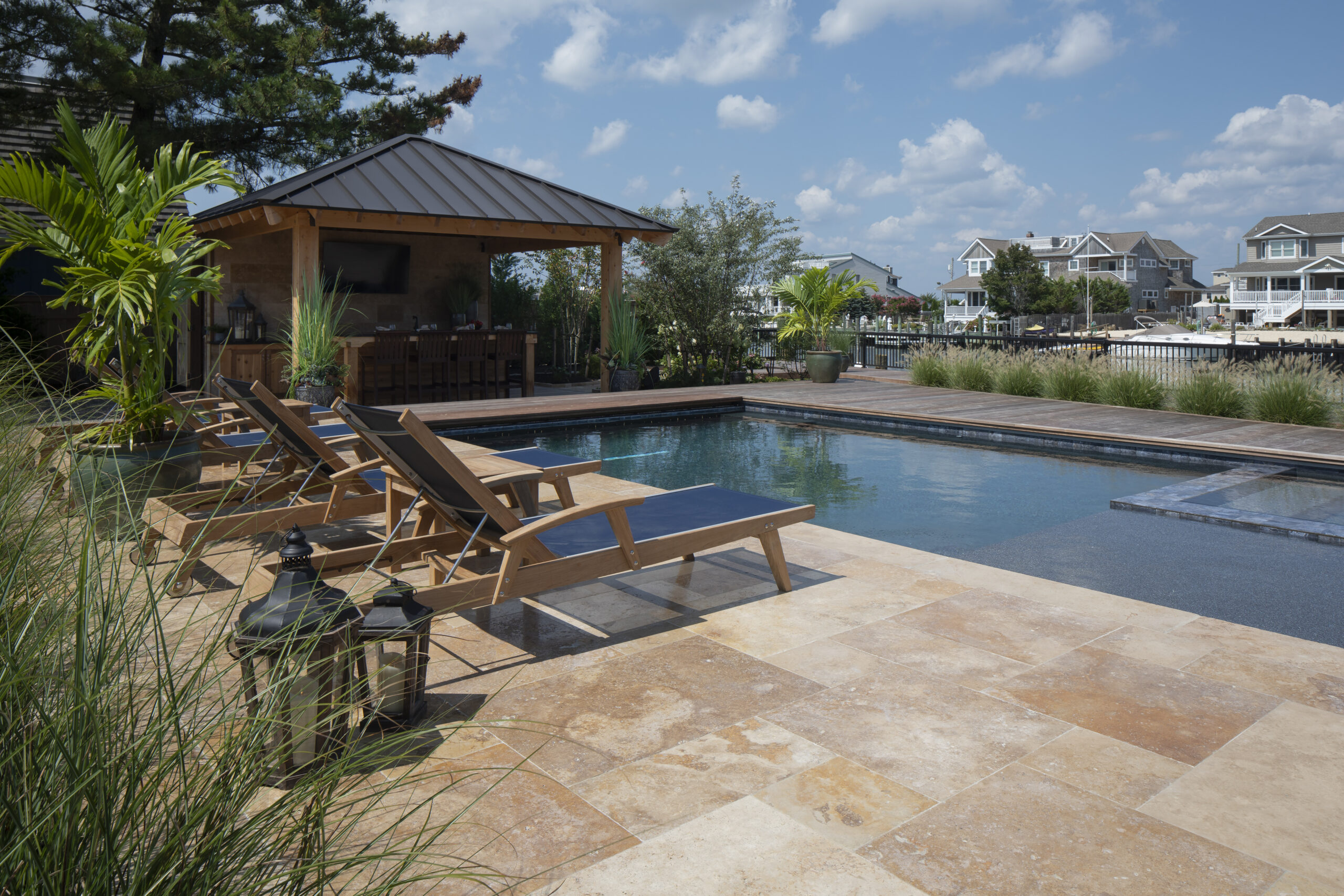 Using stone swimming pool tiles is about more than just good looks; it’s about making a practical choice for maintenance and longevity. Stone tiles are known for their non-slip surfaces, resistance to fading, and ability to maintain their integrity under chemical treatments and sun exposure. These characteristics make them a practical yet beautiful choice for any pool owner.