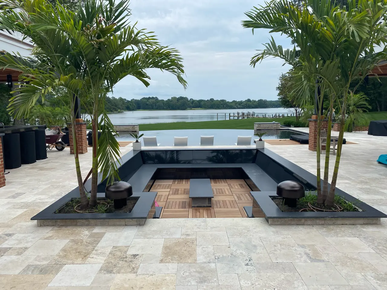 Marble pavers offer a sophisticated look with their smooth finish and subtle color variations. They work well in both modern and traditional designs, providing an elegant foundation for patios, walkways, and pool decks.